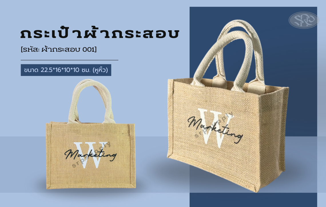 กระเป๋าผ้ากระสอบ คือกระเป๋าที่ผลิตจากผ้ากระสอบธรรมชาติหรือผ้ากระสอบสังเคราะห์ เนื้อผ้ามีลักษณะหยาบ แข็งแรง และทนทานมากเป็นพิเศษ จุดเด่นอยู่ที่ความเป็นเอกลักษณ์ ให้ลุคเป็นมิตรกับสิ่งแวดล้อม และเหมาะกับงานดีไซน์หลากหลาย ไม่ว่าจะใช้เป็นถุงช้อปปิ้ง กระเป๋าใส่ของพรีเมียม ของแจกในอีเวนต์ หรือเป็นบรรจุภัณฑ์สินค้าเก๋ ๆ กระเป๋าผ้ากระสอบจึงเหมาะกับทั้งองค์กร ร้านค้า หรือผู้ที่ต้องการกระเป๋าแนวอีโค่ สไตล์ธรรมชาติ